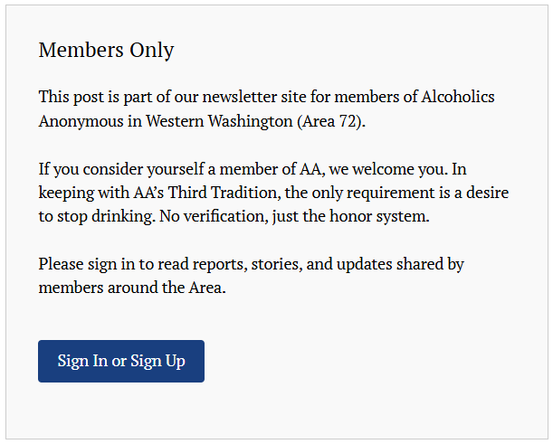 NOTE: The newsletter site is for AA members in Western Washington. When you click on an article you may receive the following notice and prompt to sign in or sign up in order to read the newsletter.
